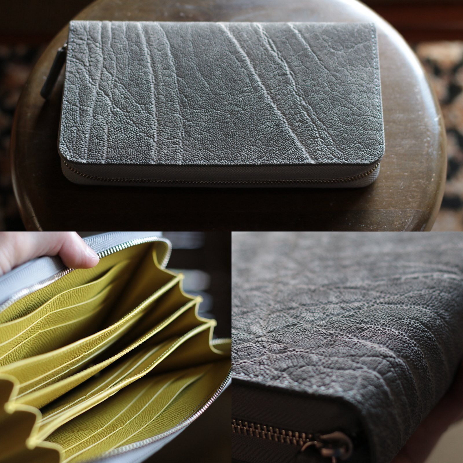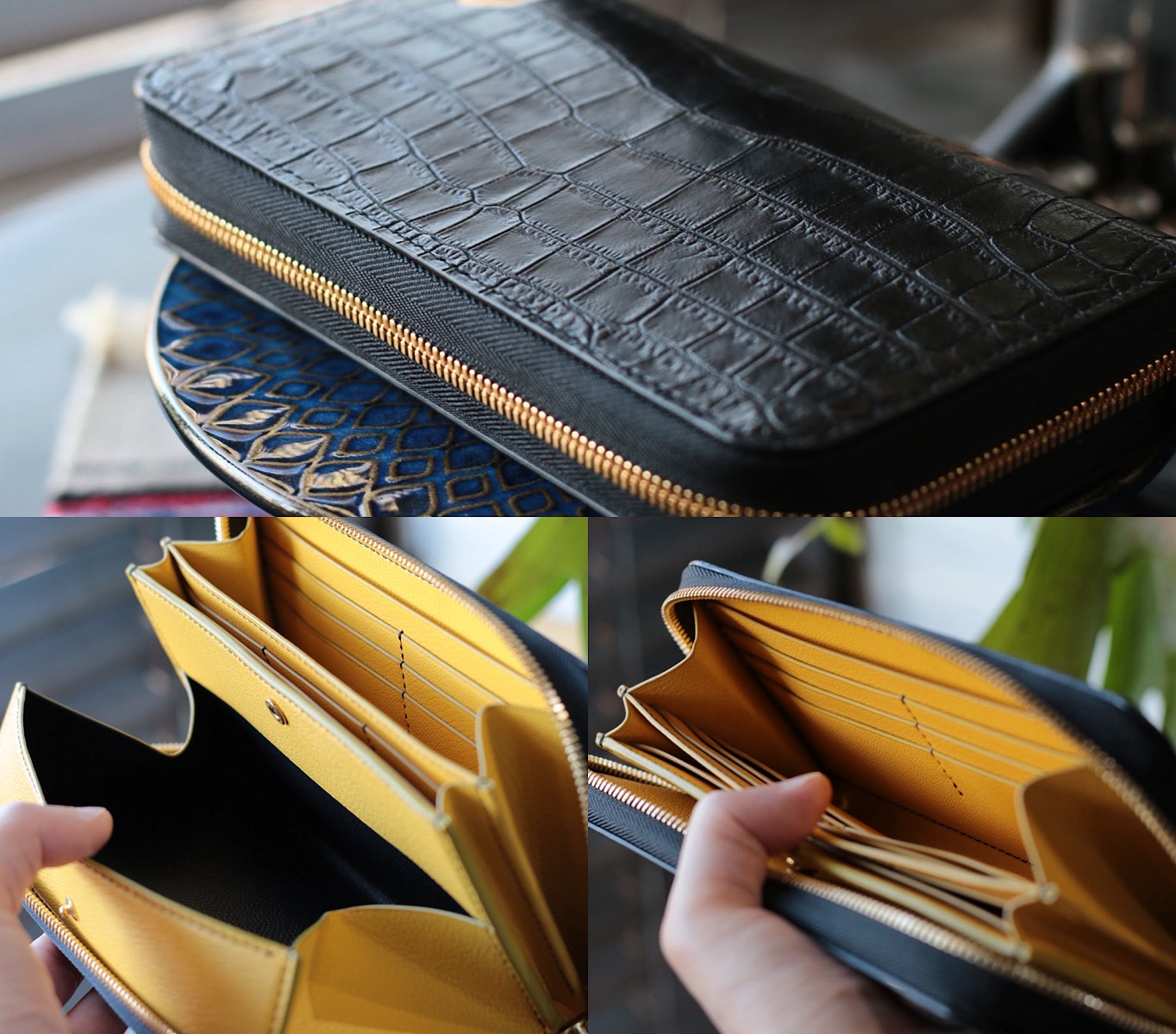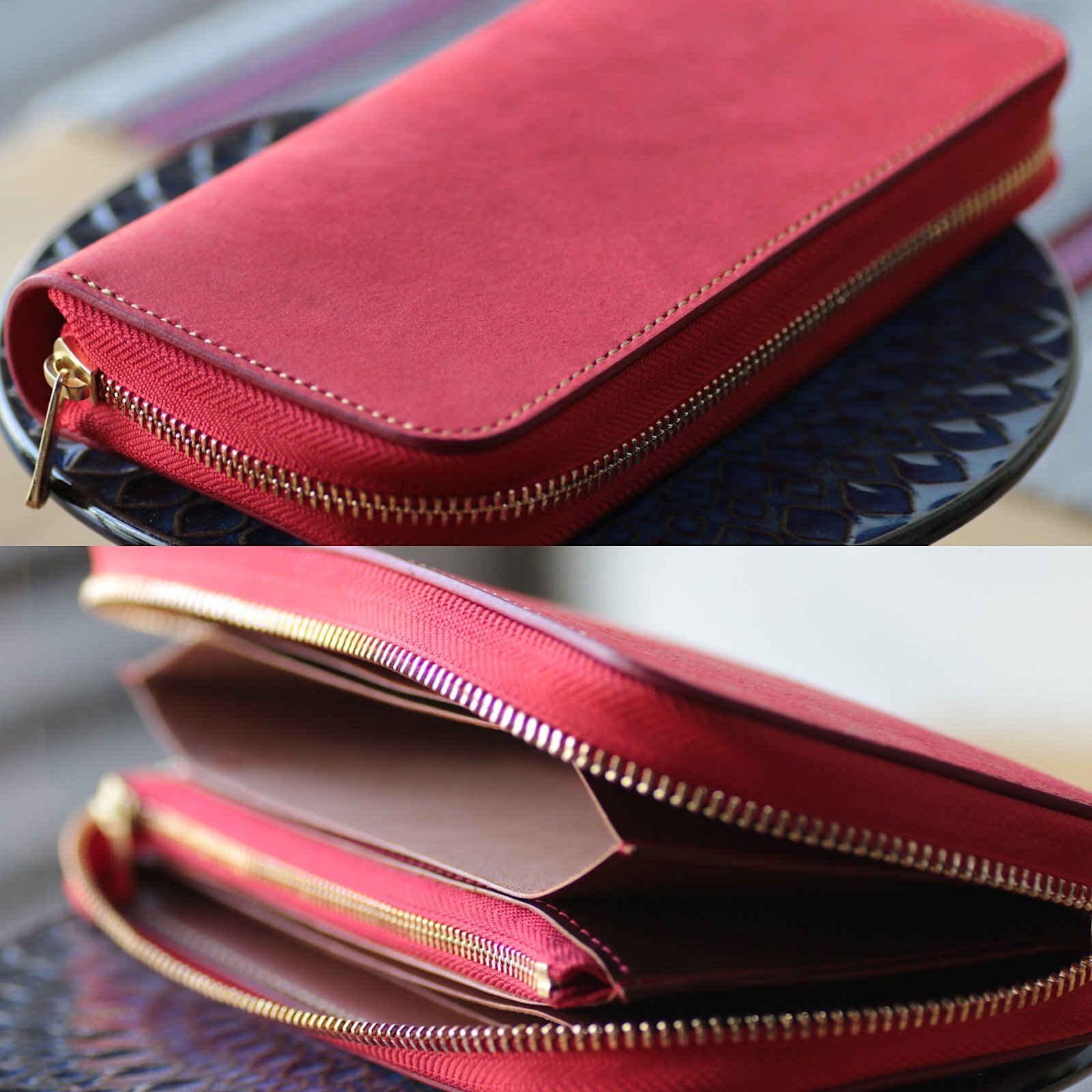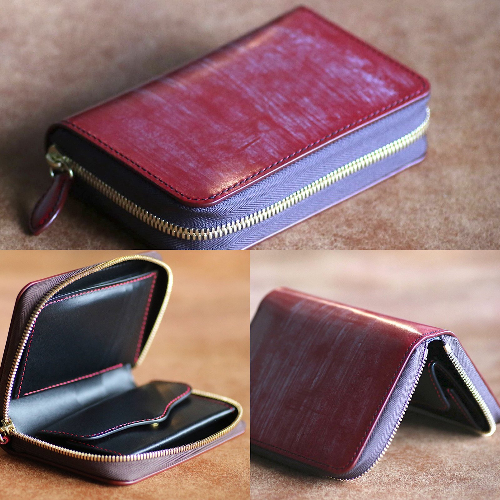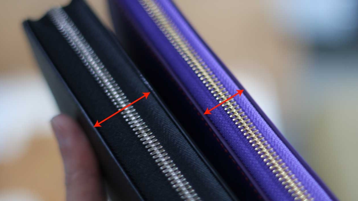 ファスナー帯(マチ)を約3.3〜3.5cmへ広げるカスタムです。通常仕様(約2.3〜2.5cm)に比べて 収納力アップ・型崩れしにくい・開口が安定するのが特長。大きく開いて出し入れしやすく、カードやレシートが偏りにくくなります。